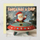 Eine skurrile und lustige Weihnachtskarte mit dem Weihnachtsmann und einem UFO / UAP. Auf der Vorderseite steht: Der Weihnachtsmann hat eine UAP. Der Rücken sagt: Frohe Weihnachten! Dies ist eine flache, zweiseitige Karte mit Platz zum Schreiben Ihrer Nachricht auf der Rückseite.