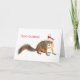 Ein fröhliches Santa Eichhörnchen mit weißem Bart und rot-weißer Kappe auf dieser lustigen Weihnachtskarte.