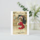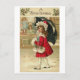 Vintage Christmas card depicting a little girl carrying a big black umbrella wishing you a merry Christmas.