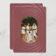 Ein wunderschönes Weihnachtskartendesign, das mit Ihrem Foto und Ihrer Familie individuell gestaltet werden kann. Golden Xmas Akzente mit ovalem Rahmen und tiefgründiger, violett rosa Hintergrundfarbe.