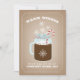 Eine Weihnachtskarte, die eine Illustration eines Maurerkirsches aus heißer Schokolade mit einem Zuckerrohr und Schneeflocken zeigt. Der Hintergrund auf der Vorderseite ist der Kartenvorrat inspiriert. Der Hintergrund auf der Rückseite ist rot-weiße Zuckerrohrstreifen. Personalisieren Sie den Text.