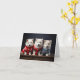 Samoyte Welpen, die in ihren Weihnachtswitzern niedlich aussehen. Weihnachtskarte für den Hund. digital erstellt. Bei der Erstellung dieser Karte wurden keine Hunde dazu gebracht, Weihnachtspulli/Pullover oder andere Kleidung zu tragen.