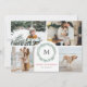 Moderne, minimale Weihnachtskarte mit 4 Fotos mit modernem Aquarellkranz, die Ihr Familienmonogramm oder Initialfoto rahmen. Die Formulierung lautet Frohe Weihnachten in rot, die auf jeden Gruß angepasst werden können, den Sie möchten. Auf der Rückseite der Karte finden Sie einen zweiten persönlichen Gruß zusammen mit Ihren Namen.