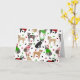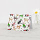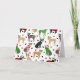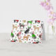 Niedliche Pitbull-Hunde mit schwarzen, braunen, blauen und roten Fellfarben in festlichen Outfits, Weihnachtsmannmützen und Raute-Pullover mit verstreuten Weihnachtsschmuckmustern.