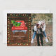 Rustikales Holz und Saitenleuchten. Niedlicher roter LKW mit einem Weihnachtsbaum und Frohe Weihnachten, ersetzen Sie das Foto mit Ihrem eigenen niedlichen Paar Schnappschuss oder familiäres Foto.