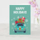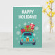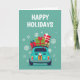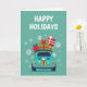 Mit dieser bezaubernden Weihnachtskarte mit einem Auto, das mit einem Stapel farbenfroher Geschenke an das Dach gebunden ist, können Sie feierlich feiern. Das spielerische Design erweckt die Freude und Spannung der Ferienzeit und eignet sich somit perfekt, um Freunden und Familie warme Wünsche zu vermitteln. Eine wunderbare Wahl für alle, die skurrile, inspirierte Urlaubsszenen Lieben haben.