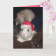 Diese vollständig anpassbare Weihnachtsgrußkarte beinhaltet eine niedliche Husky-Ratte, die beim Tragen einer Weihnachtsmannmütze mit dem Insidertext von "Frohe Weihnachten", Fotokopie-Copyright Mindgoop
