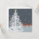 Fox und Rotwein Weihnachtskarte. Feierliche Stimmung in den ruhigen, schneebedeckten Wäldern.