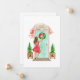 Weihnachts-Weihnachtskarte mit Aquarellbildern von brünettem Mädchen und Weihnachtskranz an einer Tür.