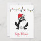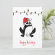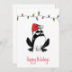 Whimsical Holiday Karten sind mit Schwarzweiß-Froschbildern mit roter Weihnachtsmannmütze, einer Reihe von Urlaubslichtern und anpassbarem Text "Happy Holidays" ausgestattet