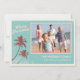 Hellblaue Vintage Weihnachtskarten am Strand mit Palmen dekoriert Weihnachtsleuchten. Personalisieren Sie mit Ihrem eigenen Foto.