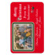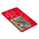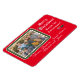 Weihnachts Card Foto Magnet Design bietet Ihr Foto in der oberen links Ecke vor einem roten Hintergrund. Foto ist von einem schönen, grün-weißen Rahmen gerahmt. Eine individuell anpassbare Überschrift lautet "Frohe Weihnachten" in weißer Schrift. Das Bild einer Weihnachtsmannmütze ist oben auf dem "C" ausgeglichen. Unten stehend steht: "Aus dem (Familienname). Ein Bild von Weihnachtsgeschenken ist unten abgebildet. Die "Unterschriften" der Familienmitglieder geben dem Design eine persönliche Touch und werden unten in einem hübschen, kursiven Schriftart dargestellt.