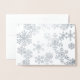 Weihnachts-Karte Diese Karte wird in weißem Kartenpapier mit einem silbernen Schneeflocken-Druck angezeigt. Passen Sie diese Karte an oder kaufen Sie, wie es ist.