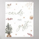 Fügen Sie mit unseren Weihnachtskarten und Geschenktafeln eine festliche Touch zu Ihrem Fest hinzu. Dieses Schild zeichnet sich durch charmante Urlaubsszenarien aus, die perfekt geeignet sind, um die Gäste in den für Karten und Geschenke bestimmten Bereich zu Ihrer Weihnachtsfeier oder Geburtstagsfeier zu führen. Ideal, um eine organisierte und einladende Atmosphäre zu schaffen, ergänzt es Ihre Feriendekoration durch saisonalen Flair. Wählen Sie unsere Weihnachtskarten und Geschenke Tafelschild, um Ihre Feier unvergesslich und voller Feiertagjubiläum zu machen.