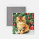 Magnet mit einer altmodischen Weihnachtskatze! Eine orangefarbene Kätzin mit schwarzen Streifen sitzt im Schnee. Hinter der Katze steht ein Weihnachtsbaum mit roten und gelben Ornamenten. Auch auf dem Schnee ist ein rotes Geschenk. Ein perfektes Geschenk für die Weihnachtszeit und Katzenliebhaber!