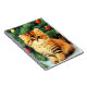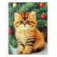 Notebook mit einer Weihnachtskatze im Jahrgang! Eine orangefarbene Kätzin mit schwarzen Streifen sitzt im Schnee. Hinter der Katze steht ein Weihnachtsbaum mit roten und gelben Ornamenten. Auch auf dem Schnee ist ein rotes Geschenk. Ein perfektes Geschenk für die Weihnachtszeit und Katzenliebhaber!
