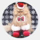 Weihnachten Orange Persian Cat Garfi gekleidet als Santa Paws in roten Stiefeln und passender Weihnachtsmannmütze und gestreifter Bug Krawatte.Garfi Lieben zum Aufziehen in den verschiedenen Outfits und ist immer fotografiert perfekt.Dieser Aufkleber ist perfekt für die Dekoration Ihrer Weihnachtskarten, Geschenke, oder jedes andere kreative Projekt mit einer Touch von Whimsy und Cutness.