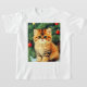 T - Shirt mit einer Weihnachtskatze im Jahrgang! Eine orangefarbene Kätzin mit schwarzen Streifen sitzt im Schnee. Hinter der Katze steht ein Weihnachtsbaum mit roten und gelben Ornamenten. Auch auf dem Schnee ist ein rotes Geschenk. Ein perfektes Geschenk für die Weihnachtszeit und Katzenliebhaber!