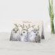 Weihnachtskarte mit schneebedeckten Eulen mit Zedernhüten