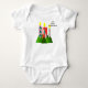 Dieser Babybodysuit hat ein Weihnachtsdesign aus Kerzen, die aus Rechtecken bestehen, die mit Sternen, Ovalen oder Diamanten verziert sind, die um den Boden gruppiert sind.