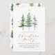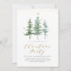 Laden Sie Ihre Gäste stilvoll ein, ob sie nun Familie, Freunde oder Arbeitskollegen sind - dieses Design funktioniert für lässige oder geschäftliche Veranstaltungen! Das Design zeigt eine Aquarellbilder von drei Pinienbäumen, die mit goldenen Sternen geschmückt sind. Ihre Veranstaltungsdetails erscheinen unten mit "Weihnachts-Party" in schicken goldenen Schriften. Oben auf dieser Einladung, gibt es Imitate Gold Glitzer. Die Rückseite der Karte ist ein verschneites Kiefernwaldmuster. Personalisieren Sie Ihre Daten mit Ihrem Familiennamen und all Ihren Party.