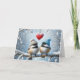 Zwei Hühnervögel tragen auf schneebedeckten Ästen gemütliche Huthölzer mit einem roten Herz über ihnen und umgeben von einer Winterlandschaft. Text kann geändert werden.