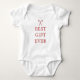 Dies ist ein niedlicher weißer Weihnachtsanzug für das neue Mädchen oder Junge Baby, der mit Bonbons gepriesen wird und "Bestes Geschenk für alle" sagt.
