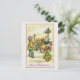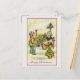 Eine Vintage Postkarte, ein restauriertes und restauriertes antikes zeichn, mit einem kleinen Jungen, mit Urlaubsgeschenken und einem kleinen Mädchen, das Weihnachts-Blume und Pflanze verkauft.