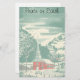 Vintage Illustration Weihnachtsfeiertag religiöses Design mit einer malerischen Kapelle in einer niedlichen Bergstadt. Eine Winterlandschaft mit Bergen, Bäumen und Schnee. Das Original ist ein rotes und grünes, feines Wasserfarbenbild.