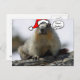 Farbenfrohe Weihnachtskarten, die man überall verschicken kann. Ein Santa Eichhörnchen mit einem Weihnachtsmann, der sich auf einem Baumzweig posiert. "Season's Greetings" ist in schwarzer Schrift in einer Sprachblase aus dem Präriehunde-Mund geschrieben.