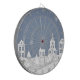 Das Design besticht durch eine festliche Landschaft einer schneebedeckten Stadt mit Häusern und einer Kirche.