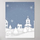 Das Design besticht durch eine festliche Landschaft einer schneebedeckten Stadt mit Häusern und einer Kirche.
