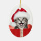 Silber oder graues Tischkätzchen in einer Weihnachtsweihnachtsferien-Geschenkboxen mit einer Weihnachtsmannmütze schickt Wünsche eines frohen Weihnachts-Foto Weihnachtsschmuck