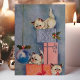 Weihnachtskitten und Geschenke Urlaubskarte . Dieses Design hat drei Kätzchen, die auf einem Turm von Weihnachtsgeschenken spielen. Was für eine schöne Retro-Urlaubsszene! Personalisieren Sie dieses maßgeschneiderte Design mit Ihrem eigenen Gruß.