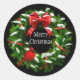 Dieser große Rundaufkleber wird mit einem festlichen Weihnachtskreidedruck gezeigt. Passen Sie dieses Objekt an oder kaufen Sie, wie es ist.