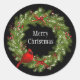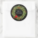 Dieser große Rundaufkleber wird mit einem festlichen Weihnachtsberry-Kranz gedruckt. Passen Sie dieses Objekt an oder kaufen Sie, wie es ist.