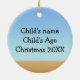 Weihnachtskleinkind-Jungen-kennzeichnet runde Verzierungs-Front einen blauen u. braunen Steigungshintergrund (kundengerecht), einen niedlichen Cartoonbabyjungen in den grünen füßigen Pyjamas mit weißen Schneeflocken. Es gibt auch einen verzierten Weihnachtsbaum mit Geschenken u. einem Teddybären unter ihm. Roter stilisierter Text ist frohe Weihnachten. Rückseite kennzeichnet einen blauen u. braunen Steigungshintergrund (kundengerecht) und Text für den Namen, das Alter und das Datum Ihr Kindes. Perfektes Andenkengeschenk für Weihnachten! Um die Hintergrundfarbe besonders anzufertigen - löschen Sie den Hintergrund - klicken Sie das Blau "besonders anfertigen es" Knopf, an - klicken Sie an das "X" nahe bei dem Hintergrund, dann klicken Sie an "redigieren" dann "Hintergrund", wählen Ihre Farbe und klicken "an getan".
