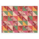 Patchwork-Design der Urlaubspresse. Tanzende Bonbons, hängende Ziergegenstände und fallende Schneeflocken vereinen sich in einem lustigen, hellen Bettgeflecht.