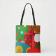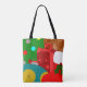 Diese Tasche hat ein Weihnachtsgeschmack mit einer Collage aus Weihnachtsbaum, einem Ornament, einem Strumpf, einem Geschenk und einem Lebkuchenjunge.