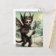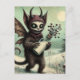 Ein gruseliges, niedliches Weihnachtsmärchen, monsterartig, mit einer Milchflasche in einer schneebedeckten Vintagen Szene. Kunst der AI