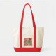 Krane genießen Weihnachten mit Freunden mit Weihnachtshüten und Dekorationen. Ein schöner beige Hintergrund mit roten Akzenten. Große Tasche für all Ihre Sachen, wo immer Sie hingehen.