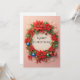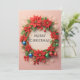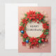 Heller und fröhlicher Weihnachtskranz mit lebhaften Poinsettien, glänzenden Ornamenten, Schneeflocken und Bändern auf einem warmen, weichen Hintergrund, der Urlaubsfreuden und Feiern symbolisiert.