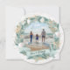 Starfish und Sand Dollar, Weihnachtsgrüßkarte im Foto, tropischer Strandurlaub mit bearbeitbarem Text und Ihrem Lieblings-Foto. Ein wunderschöner Kranrahmen mit Muscheln und Schätzen aus dem Meer. Vintager Strand inspirierte Weihnachtskarte.