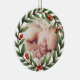 Weihnachts-Kraut-Foto-Ornament mit Ihrem Lieblings-Foto in der Mitte umgeben von einem traditionellen Weihnachtskranz mit Grün und Beeren auf einem tiefen roten Hintergrund. Die Rückseite hat das gleiche tiefe Rot mit goldenem Text. Ein wunderschönes "Wirbles" Weihnachtsskript zusammen mit Ihrem individuell gestaltbaren Text verleiht einen eleganten und klassischen Eindruck. Für die festliche Jahreszeit wird es sich um einen wertvollen Sake handeln - Sie gestalten ihn und passen ihn an ein Neugeborenes, Kinder, Haustier oder ein Familienportrait an.