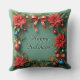 Feierlicher Kranz mit roten Poinsettien, dekorativen Bauern und goldenen Farbenakzenten, Set vor einem lebendigen Hintergrund, perfekt für Weihnachtsdesigns, Einladungen und Grußkarten.