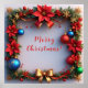 Feierlicher Kranz mit roten Poinsettien, dekorativen Bauern und goldenen Farbenakzenten, Set vor einem lebendigen Hintergrund, perfekt für Weihnachtsdesigns, Einladungen und Grußkarten.