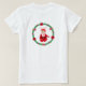Niedliche Weihnachten glückliche Baby-und Kiefernkranz T - Shirt. Der Weihnachtskranz ist mit Poinsettien, Kiefernzapfen und roten Weihnachtsbällen geschmückt. Das Weihnachtskind hält ein Herz, das heißt, Weihnachten dreht sich um reine und göttliche Liebe! Möge diese göttliche Liebe das bestste Geschenk von allen sein!