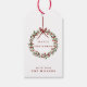 Weihnachtskranz mit rotem Bogen auf weiß Geschenkanhänger