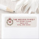 Weihnachtskranz mit rotem Bogen auf hellrosa Hintergrund Rücksendetikett.