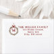 Weihnachtskranz mit rotem Bogen auf weißem Hintergrund Rücksendetikett.